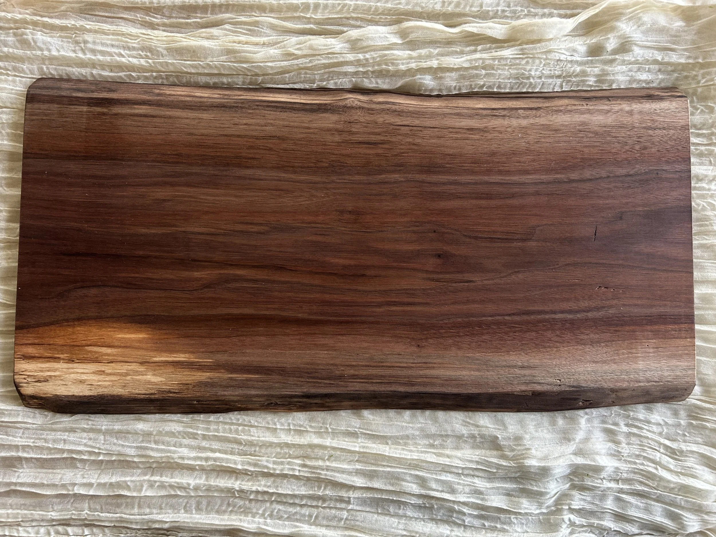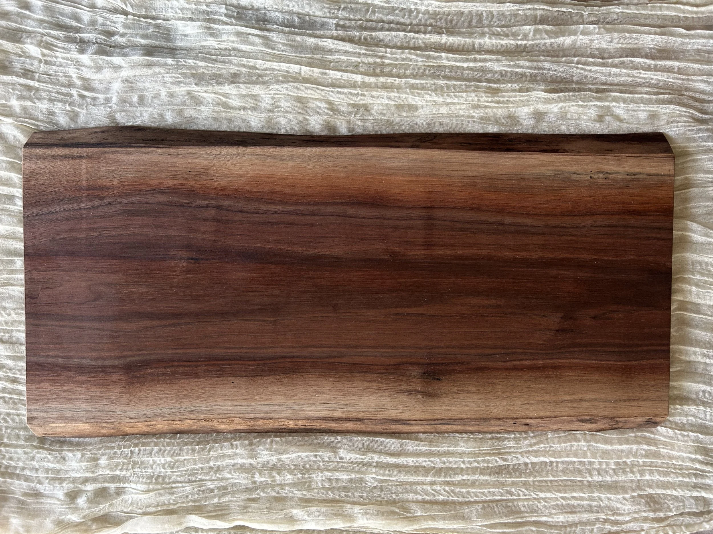 21” x 7.75” Charcuterie board. Comes with a custom engraving up to 4'“x4”. Sealed with food safe beeswax. Comes with a 2oz jar of board butter for easy upkeep.